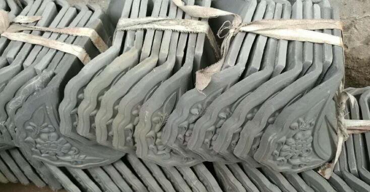 板瓦,折腰板瓦,罗国筒瓦,筒瓦,当沟,猫头,勾头,唐勾头,滴水,龙滴水,牡丹滴水,虎头勾檐,寿字花檐,花边勾檐,荷花滴头,牡丹滴头,金钱花窗,花窗